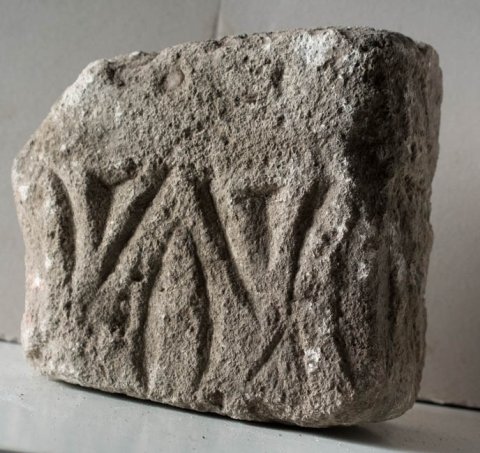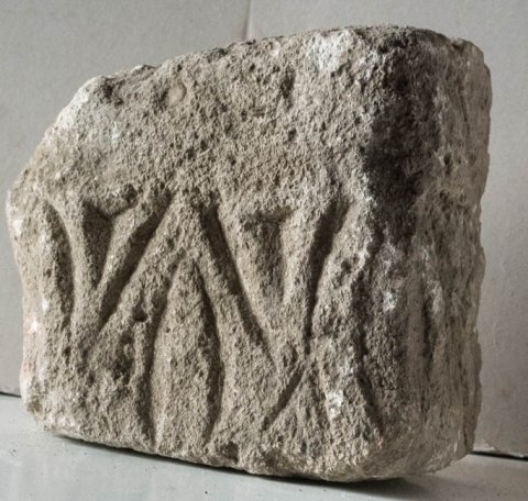 - Pilasterkapitell (?) mit vereinfachtem Blattkranz (?);