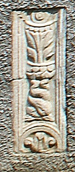 2668 Pilasterfragment mit Delphinen und Blattkelch