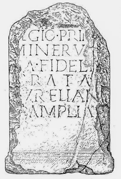 - [L]egio prim[a] / Minerv[ia] / [p]ia fideli[s] / prata / [A]urelian[a] / [a]dampliav[it]