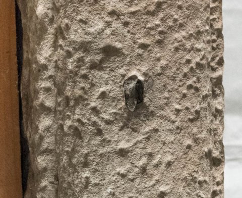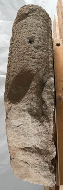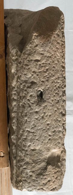 - rechts u. unten abgebr., oben Falz, Oberfläche grob bearbeitet