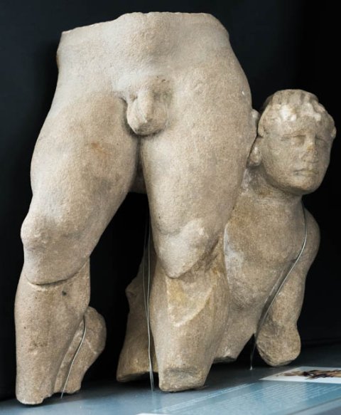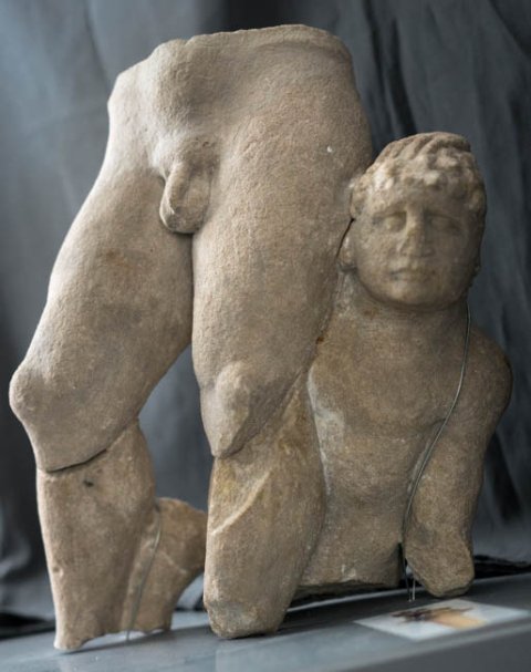 - aus Fragmenten zusammengesetzt, Oberkörper u. Kopf , Arme u. Füße des Jupiter, Unterteil des Giganten fehlen