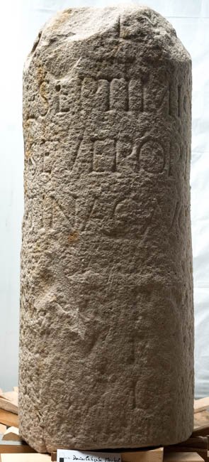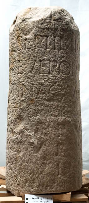 - [Imp(eratori) Ca]e[s(ari)] / L(ucio) Septimio / Severo Per/tinac(i) Aug(usto) / [[------]] / [[------]] / [[------]]/ano L(eugas) VII