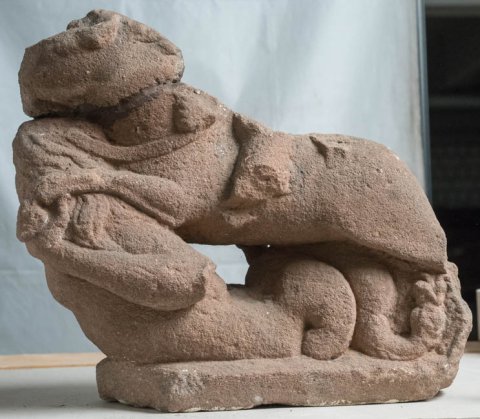 - aus 2 Teilen zusammengesetzt, vom Jupiter nur rechtes Bein u. Rest des linken Beins erhalten, Pferdekopf verbr., Hinterbeine des Pferdes abgebr.
