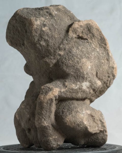 - Hals, Brust u. Vorderbeine des Pferdes, Kopf u. Oberkörper des Giganten erhalten. Stark bestoßen.