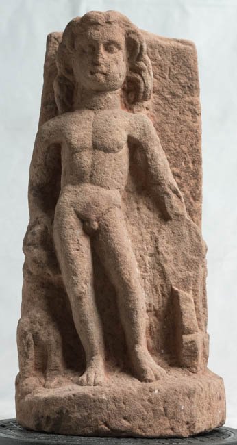 - Mythische Figur: stehender nackter Apollo mit langem Haar, an seiner linken Seite Pfeiler mit Kithara (?), an der rechten hockender Greif.