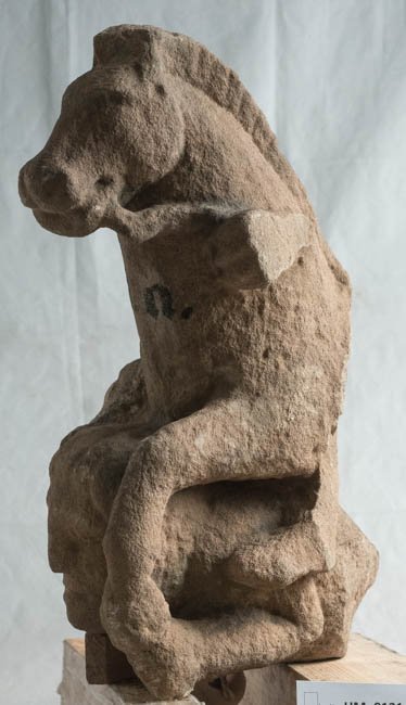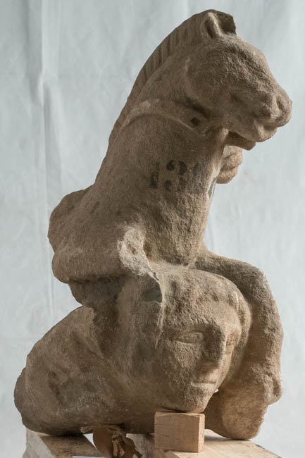 - Kopf, Hals u. linkes Vorderbein des Pferdes mit linker Hand des Jupiter, Kopf u. Oberkörper des Giganten
