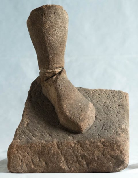 - a) linker beschuhter Fuß und Unterschenkel auf eckiger Plinthe b) Unterschenkelfragment