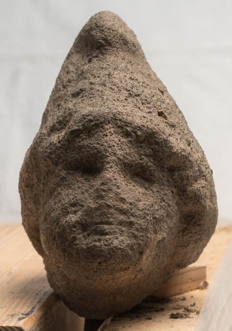 - stark verwittert, Bruch durch den Hals