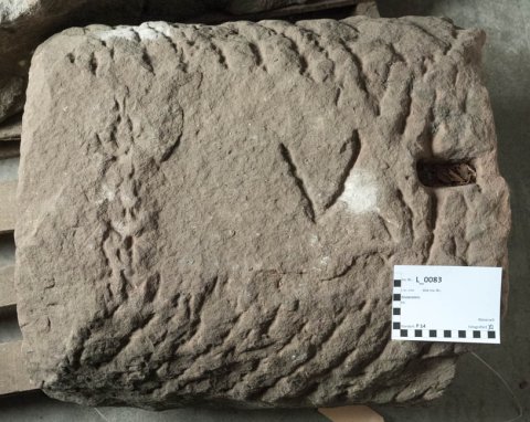 - rechts abgebr., in der Oberseite Hebeloch u. Buchstabe