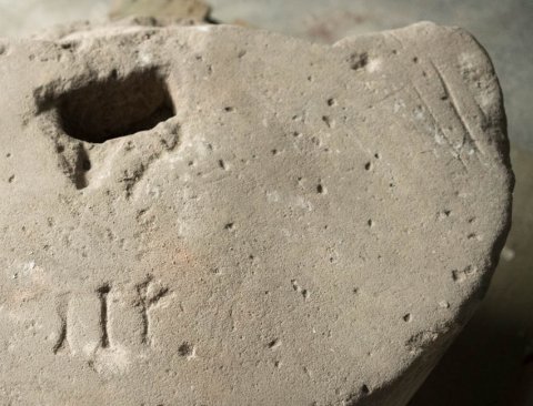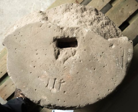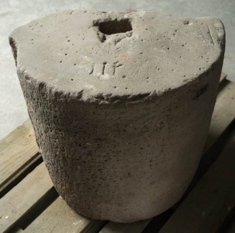 - Säulentrommel, in der Oberseite Hebeloch und Versatzzeichen