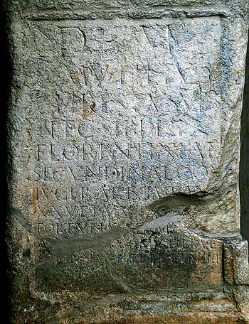 - D(is) M(anibus) / Q(uintus) Mutilius / Chrestus vi(v)us / fec(it) sibi et / Florentiniae / Secundinae con/iugi rarissim(a)e ann(orum) / XXV et Mutiliae / Fortunatae matri / ann(orum) LXX et Mutiliae / Crispinae nepti ann(orum) IIII