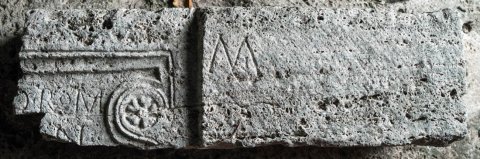 - gerahmtes Schriftfeld, sogenanntes Barockmotiv mit Rosette