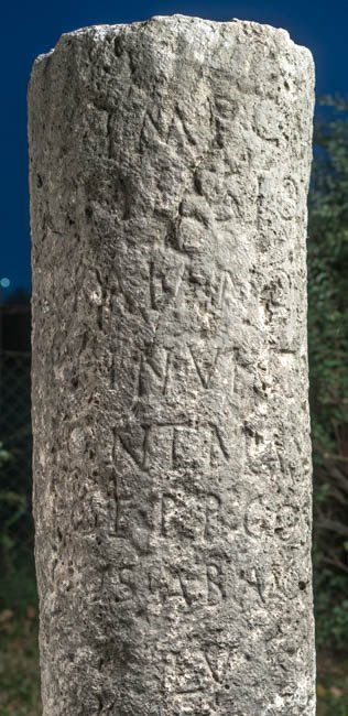 - Imp(eratori) Caes(ari) / G(aio!) Messio Quinto / Traiano Decio / P(io) F(elici) Invicto Aug(usto) / pont(ifici) max(imo) trib(unicia) / pot(estate) p(atri) p(atriae) co(n)s(uli) pro/co(n)s(uli) ab Aq(uinco) m(ilia) p(assuum) / LV