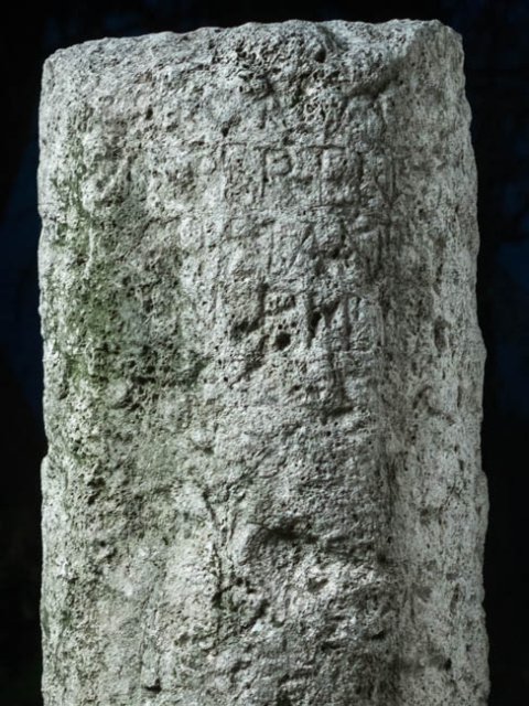 - Imp(erator) Caes(ar) C(aius) Iul(ius) / Verus Maximinus / Pius F(elix) Aug(ustus) p(ontifex) m(aximus) trib(unicia) / pot(estate) II imp(erator) III co(n)s(ul) / p(ater) p(atriae) proco(n)s(ul) et C(aius) Iul(ius) / Verus Maximus Aug(ustus) / nobilissimus Caes(ar) restituerunt / ab Aq(uinco) m(ilia) p(assuum) / L