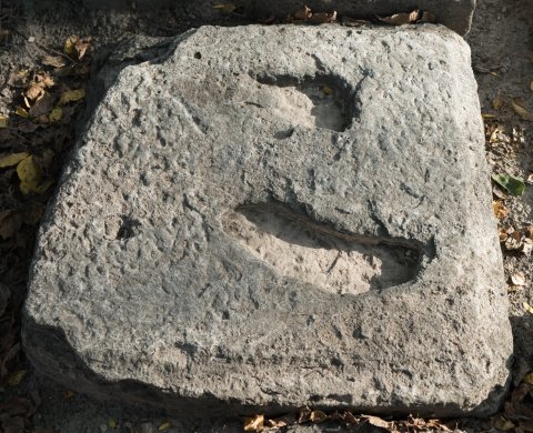 - Deckplatte mit Eintiefungen für die Statuenfüße;