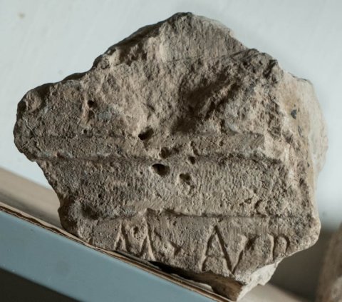 - rundum abgebr., oben Rest des Rahmens u. linke obere Ecke der Inschrift