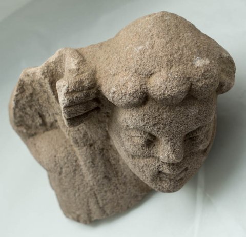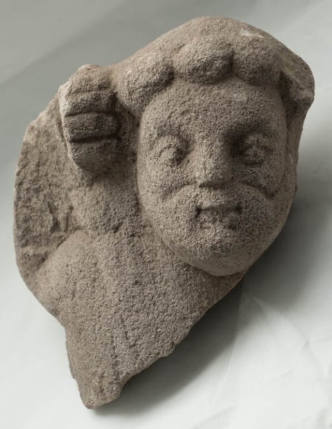 - Mythische Figur: Kopf eines bärtigen Giganten mit Buckellocken, Teil einer Jupiter-Giganten - Gruppe.