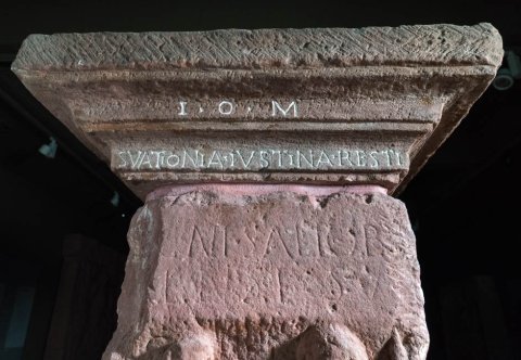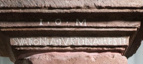 - I(ovi) O(ptimo) M(aximo) // Suationia Iustina Resti//[tuti? f(ilia)? ---
