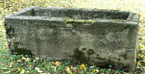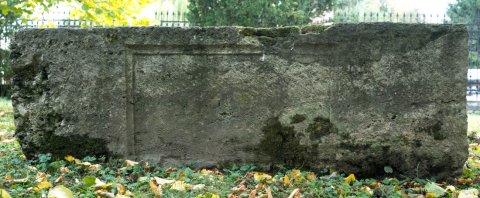 - Sarkophagkasten mit rechteckigem gerahmten Schriftfeld
