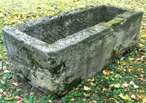 - Deckel fehlt, stark verwittert, Oberkante tlw. abgebr.