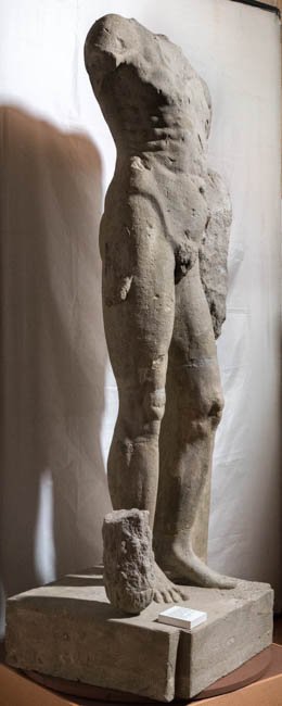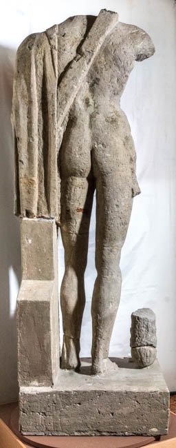 - Aus Fragmenten zusammengesetzt, Kopf, rechter Arm, linker Unterarm fehlen.