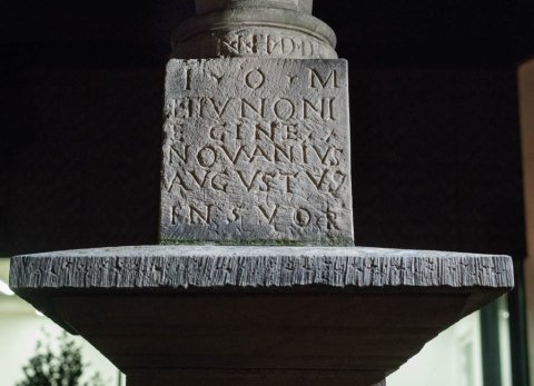 - In h(onorem) d(omus) d(ivinae) // I(ovi) O(ptimo) M(aximo) / et Iunoni / Regin(a)e / Novanius / Augustus / in suo <p>(osuit)