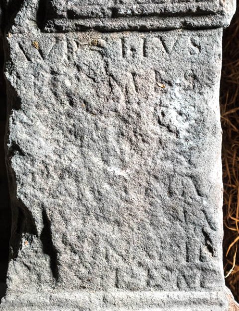 - I(ovi) O(ptimo) M(aximo) / [et Iu]n(oni) Reg(inae) / Aurelius / He[r]mes / N[---]EG / [---]C / [---]tia / [---]ana / [Apol]linari(?) f(iliis?) / [v(otum)] s(olvit) l(ibens) l(aetus) m(erito)