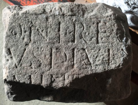 - rundum abgebr., oben Rest eines Rahmens, stark verwittert