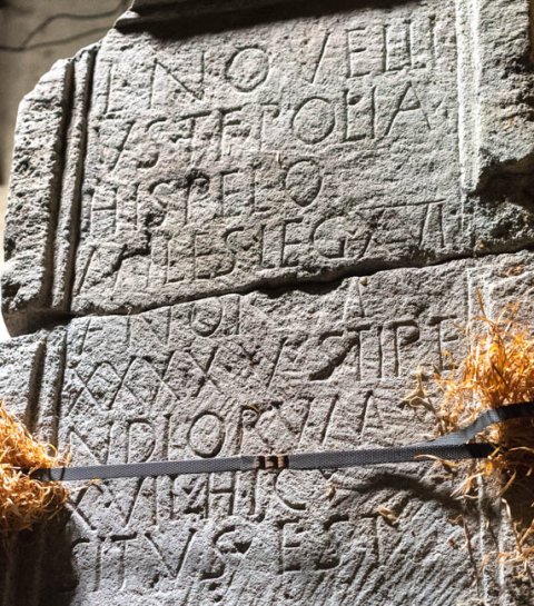 - L(ucius) Novelli/us T(iti) f(ilius) Pol(l)ia / Hispel(l)o / miles leg(ionis) XVI / an(n)orum XXXXV stipe/ndiorum / XVII hic / situs est