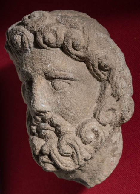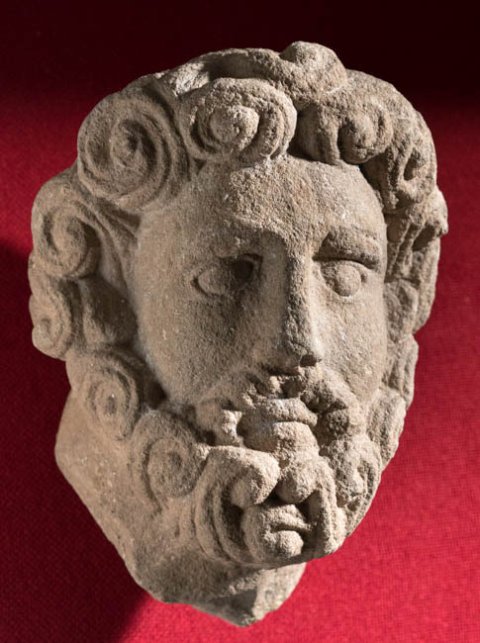 - Mythische Figur: bärtiger Jupiterkopf (von einer Jupiter-Giganten-Gruppe ?).