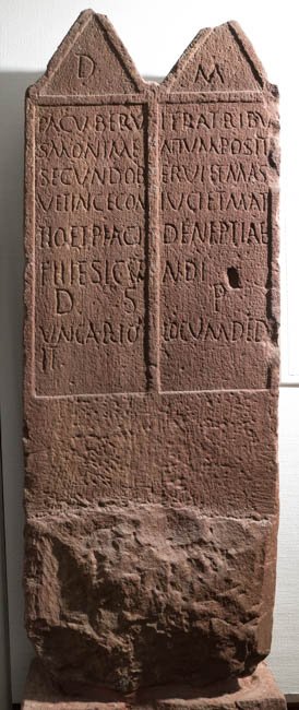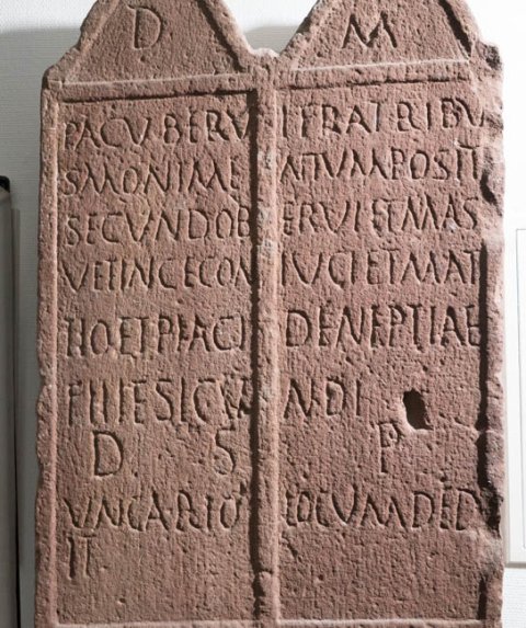 - D(is) // M(anibus) // Pacu(s) Berv//i fratribu//s monime//ntum pos(u)it // Secundo B//ervi et Mas//uetinc(a)e con//iugi et Mat//tio et Piaci!)//di(a)e neptiae // fiii(a)e(!) Sicu//ndi(!) // d(e) s(ua) // p(ecunia) // Ungario // locum ded//it