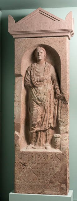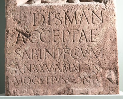 - Dis Man(ibus) / Acceptae / Sabini f(iliae) civ(i) M[e(diomatricae)?] / an(norum) XXV Ammon[ius] / Mogetius coniu[x]