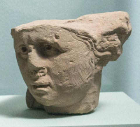 - Zur rechten Schulter geneigter Frauenkopf mit aufgestecktem Haar. Zum Rohrbacher Turmgrabmal gehörig.