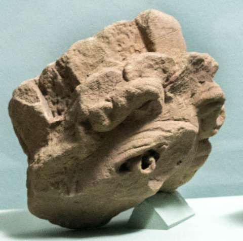 - Kopf mit lockigem Haar und Mauerkrone (Genius ?), zum Rohrbacher Turmgrabmal gehörig