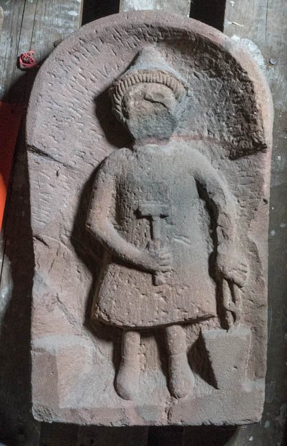 - Mythische Figur: in Bogennische Vulcanus in kurzem Gewand und Mütze, in der Rechten Hammer, in der Linken Zange, darunter Amboss.
