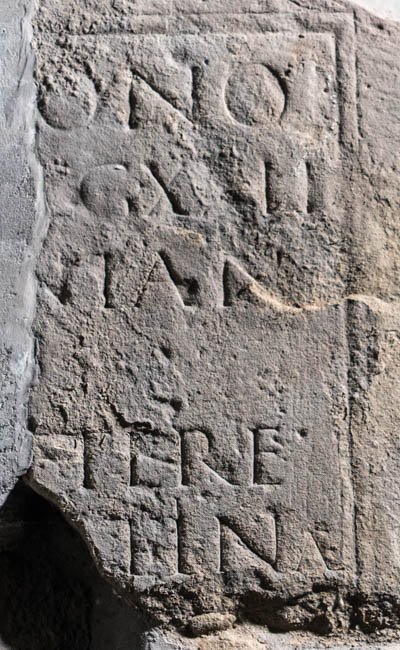 - [--- H]ono/[ri aquilae l]eg(ionis) XXII / [Pr(imigeniae) p(iae) f(idelis) Antoni]nian(ae) / [Marcus Tillius M(arci)] f(ilius) Tere/[tina Rufus A]tinae [------ // [p(rimus) p(ilus) leg(ionis) s(upra) s(criptae) ex] / CCC(trecenario) d(onum) [d(edit) ---]r(---) A/vito [leg(ato) Aug(usti) pr(o) pr(aetore) G(ermaniae) s(uperioris)] / d(omino) n(ostro) Im[p(eratore) Antonino] / Aug(usto) [IIII et] / Balbin[o II co(n)s(ulibus)]