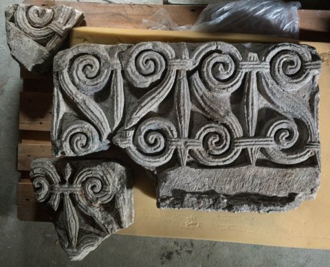 - größeres Stück aus 3 Fragmenten zusammengesetzt, 2 kleinere (anpassende) Fragmente