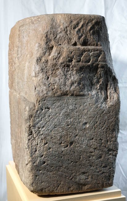 - stark bestoßen u. verrieben, rechts abgebr., oben, linke Seite u. Rückseite geglättet