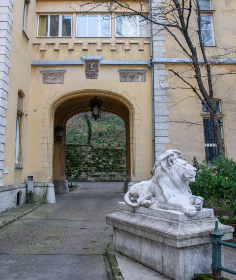 - Budafok, Schloss Törley (heute Sektfabrik), über einer Durchfahrt hoch oben eingemauert