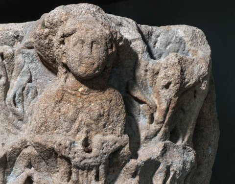 - Kapitell mit Blattkränzen und vier Büsten (die beiden erhaltenen sind weiblich)