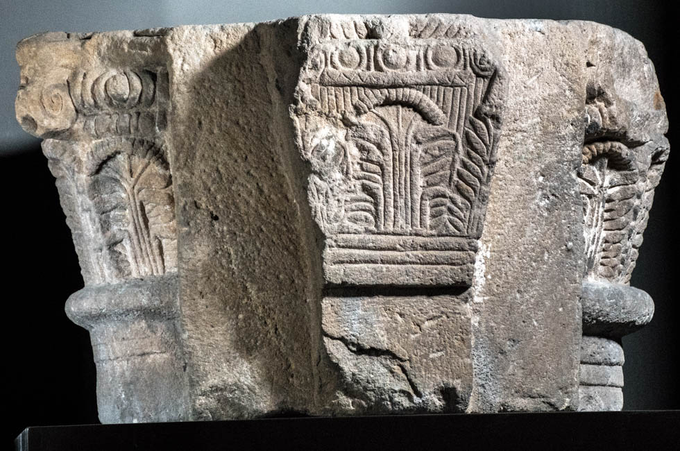 27273 Block mit Kapitellen von zwei Halbsäulen und einem Pilaster