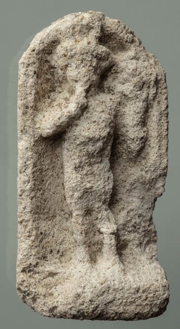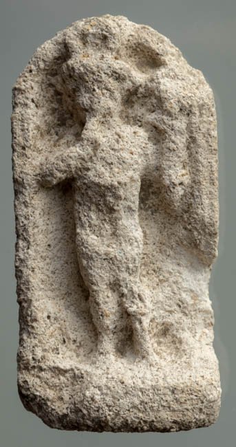 - Mythische Figur: stehender nackter Harpokrates mit Krone, Füllhorn im linken Arm, rechte Hand zum Mund geführt.