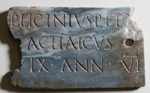 - P(ublius) Licinius P(ubli) et |(mulieris) l(ibertus) / Achaicus / vix(it) ann(os) VI