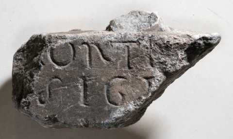 - rechts u. unten abgebr., linke Vorderkante verbr., auf der Oberseite Ansatz einer Skulptur (?)