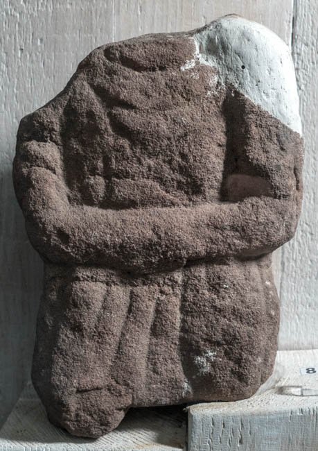 - Torso einer stehenden bekleideten Figur mit vor dem Leib verschränkten Armen (Attis ?).
