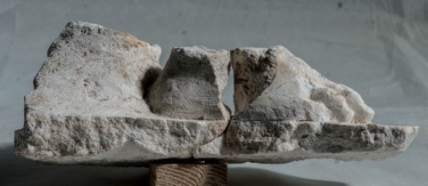 - rechter nackter Fuß auf flacher Plinthe mit Ansatz einer Stütze (?)