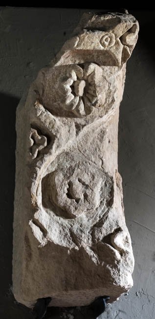 - Gewölbte Kassettendecke mit polygonalen Feldern mit Rosetten.