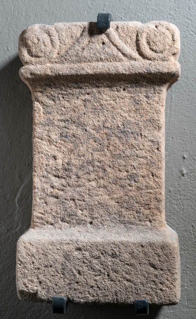 - Altar mit kubischem Sockel und Deckplatte mit Giebel zwischen Pulvini.