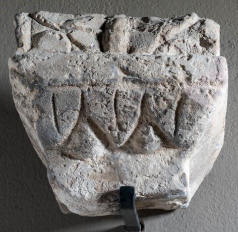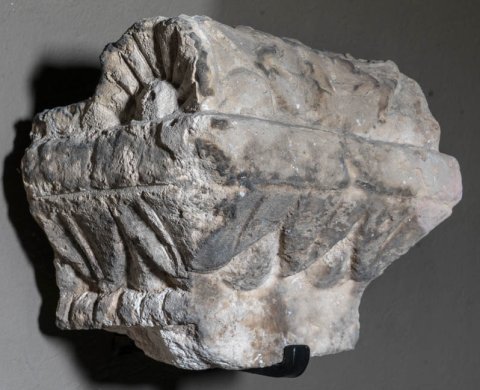 - Altaraufsatz mit Blattkyma, darüber geschnürter pulvinus mit Rosette.