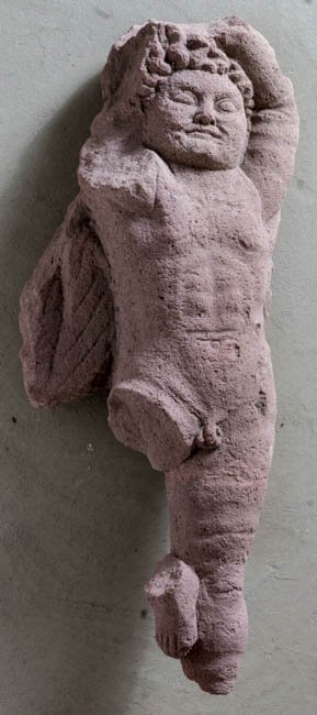 - Mythische Figur: auf dem Rücken liegender Amor mit über den Kopf gelegten Armen.